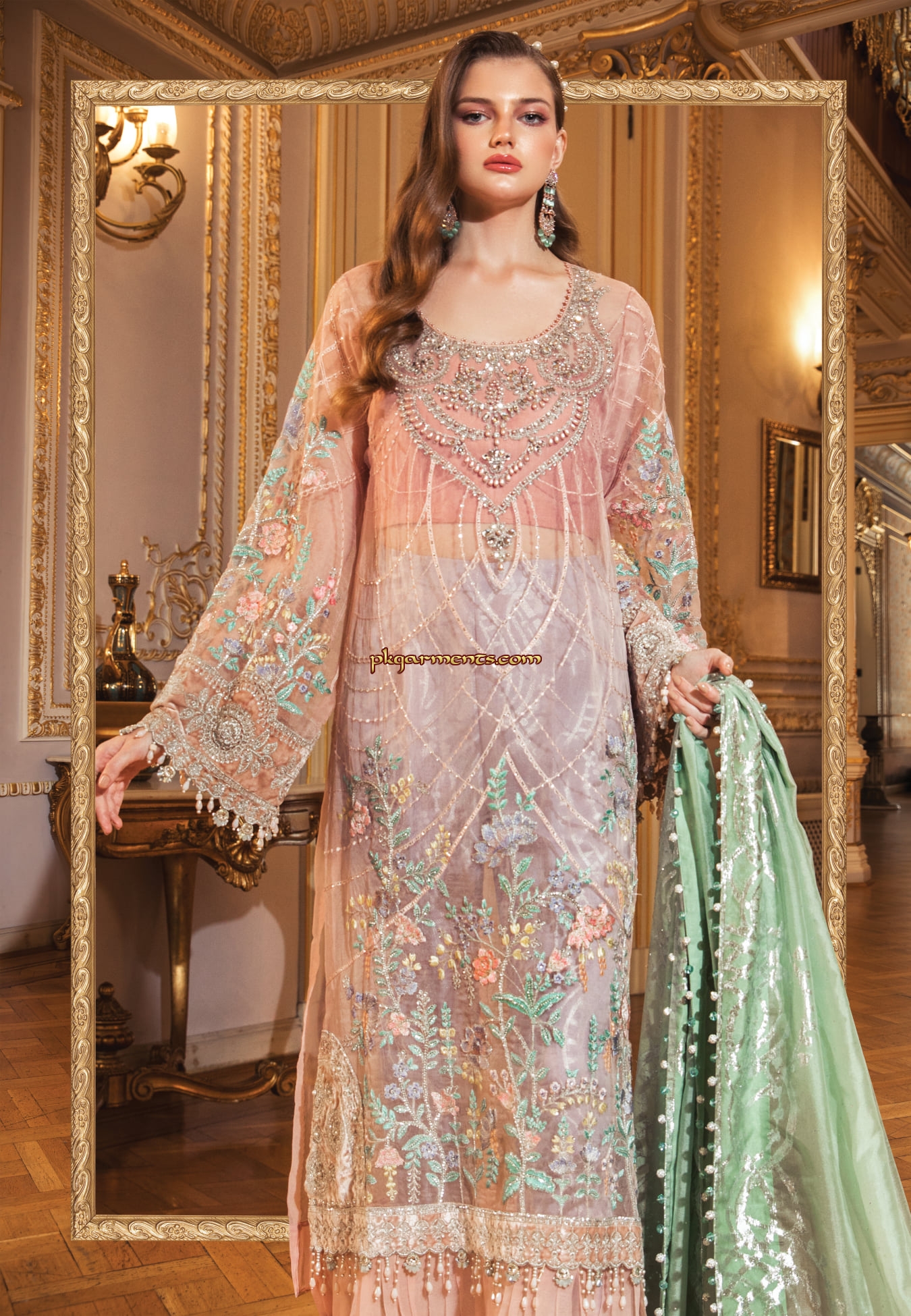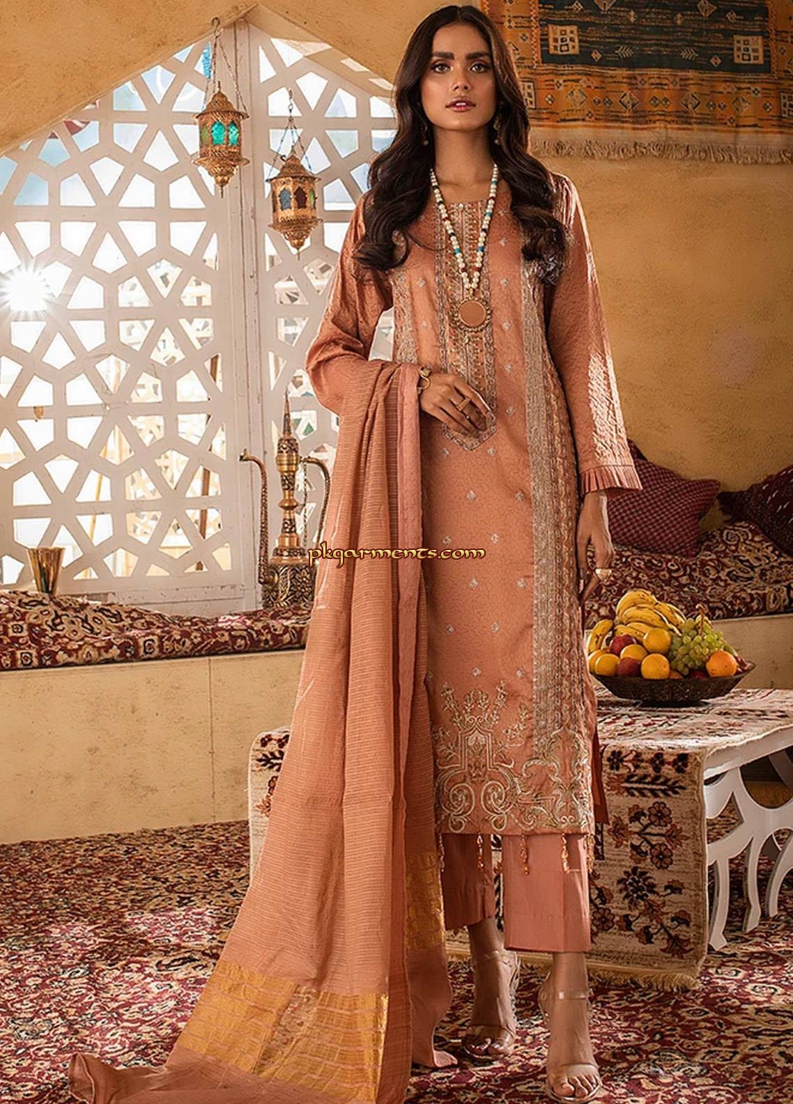 Shaista Muskurahat Sami Peach Embroidered 2020