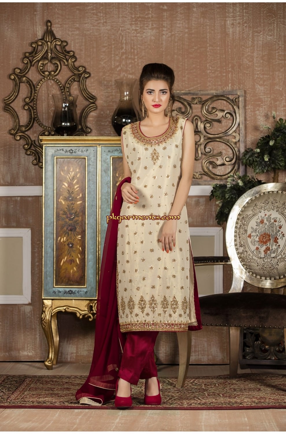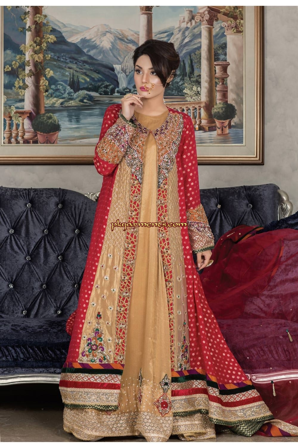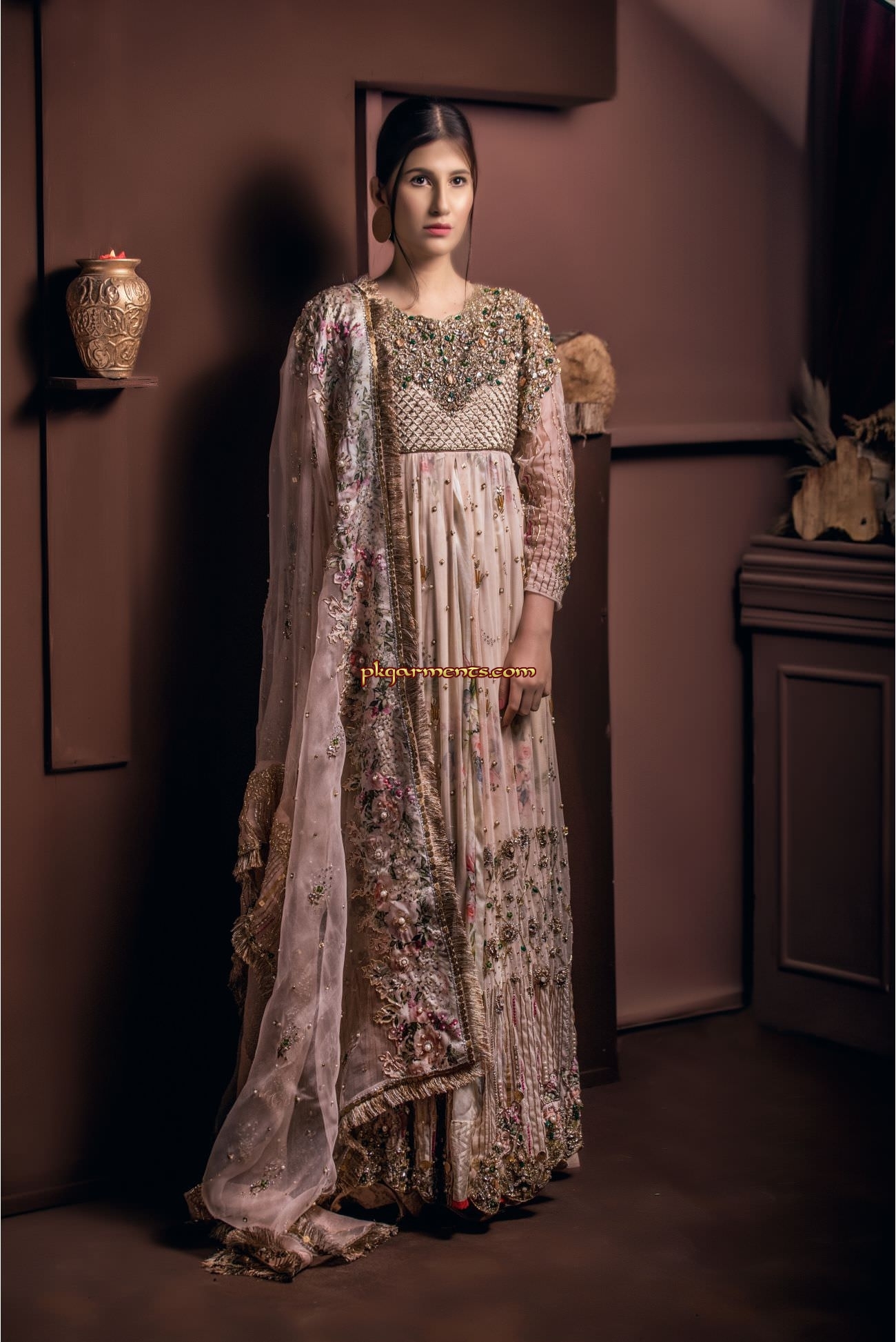 Pakistani brides are more conscious for their wedding dresses, as in Pakistan, there is no greater event in a family than a wedding. Since it is the most important ceremony in one’s life so every one is very selective for wedding dress and similarly we are also very much committed to make the bridal dress for spotlight personality an outstanding in a way that one should be really proud and look out of the crowd, while wearing the dress made by pkgarments.com