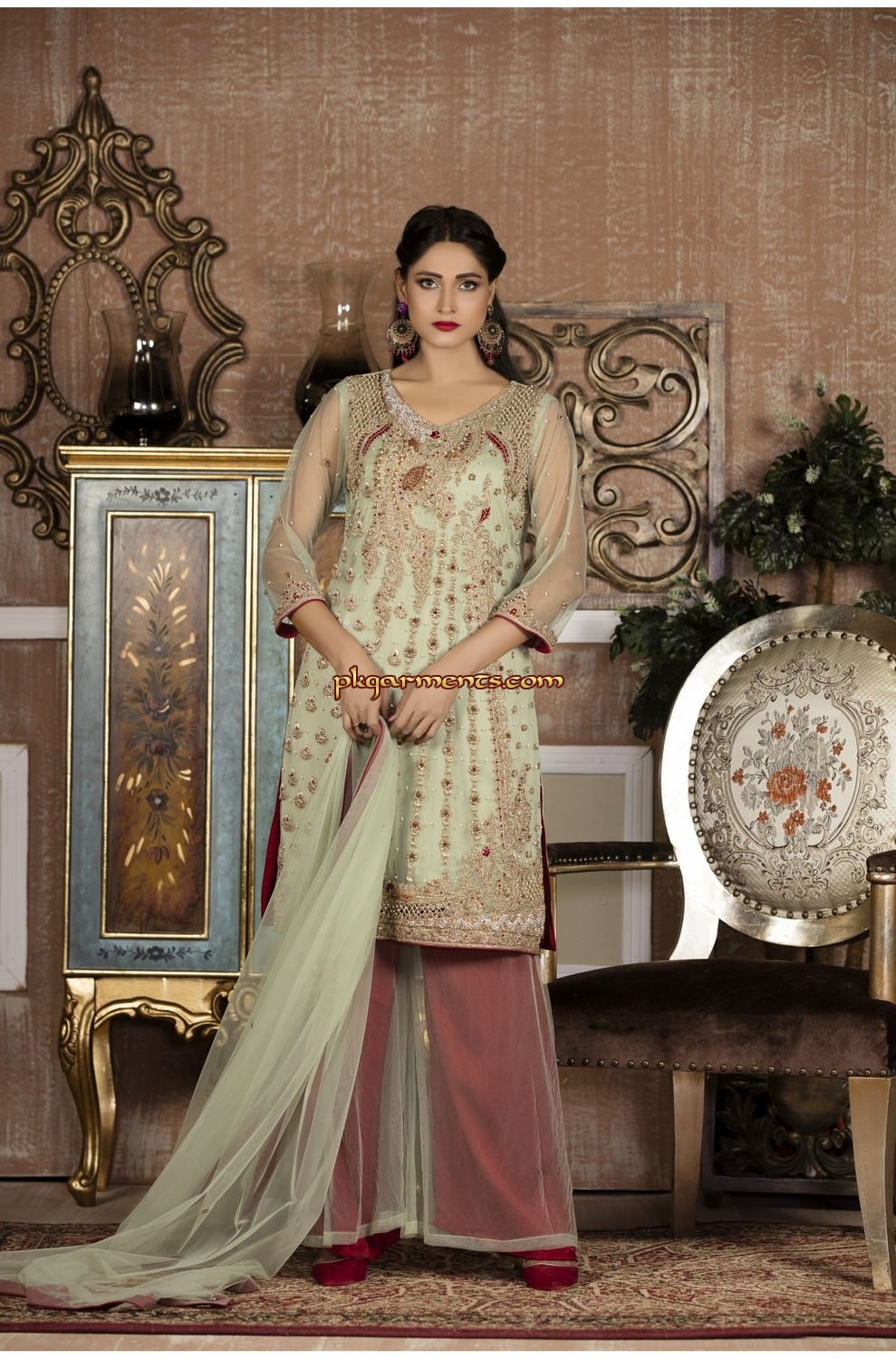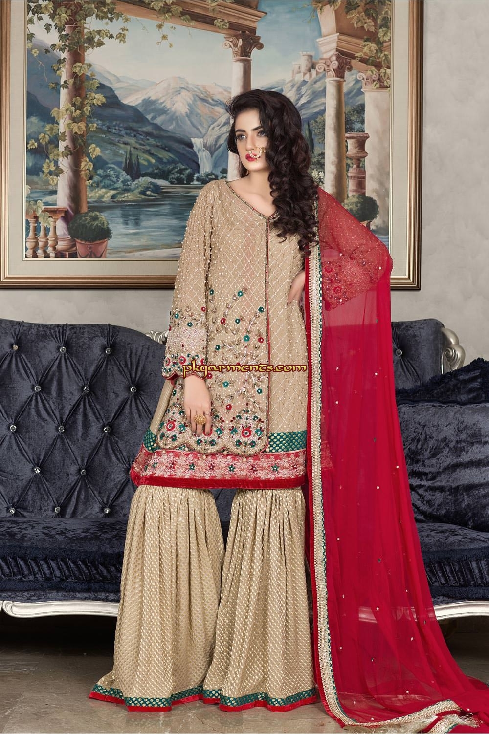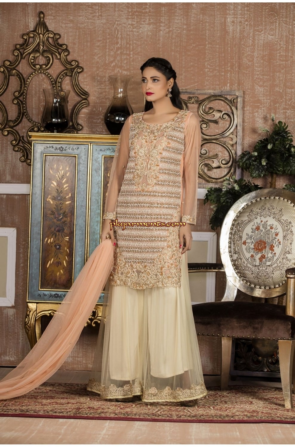 PkGarments.com offers latest Pakistani traditional and trendy bridal dresses according to the season and taste of Pakistani brides which includes Pakistani bridal lehngas, Pakistani bridal gowns, Pakistani bridal shararas and ghararas in highest quality fabrics, best standards hand embellishment materials and at best price.